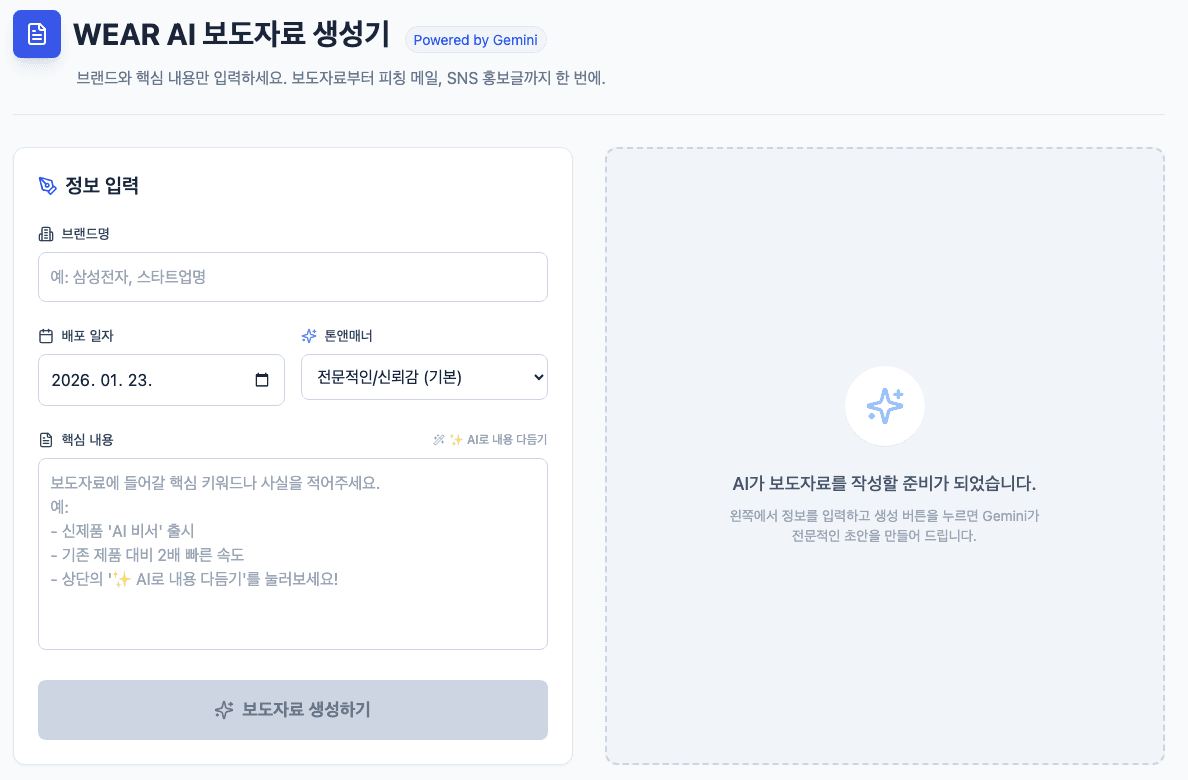 브랜드, 핵심키워드만으로 보도자료를 만듭니다.
