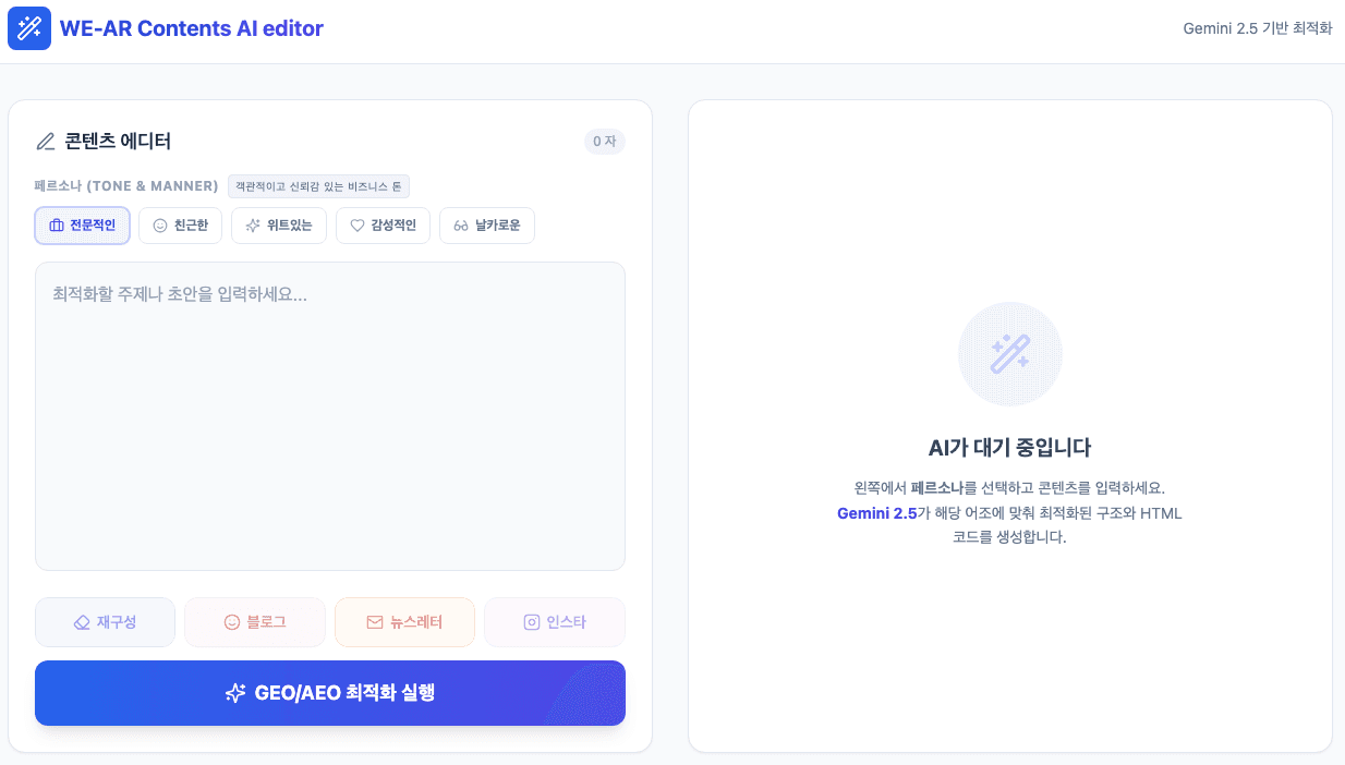 간단한 내용을 다양한 톤과 형태로 완성해주는 콘텐츠 제작 도구