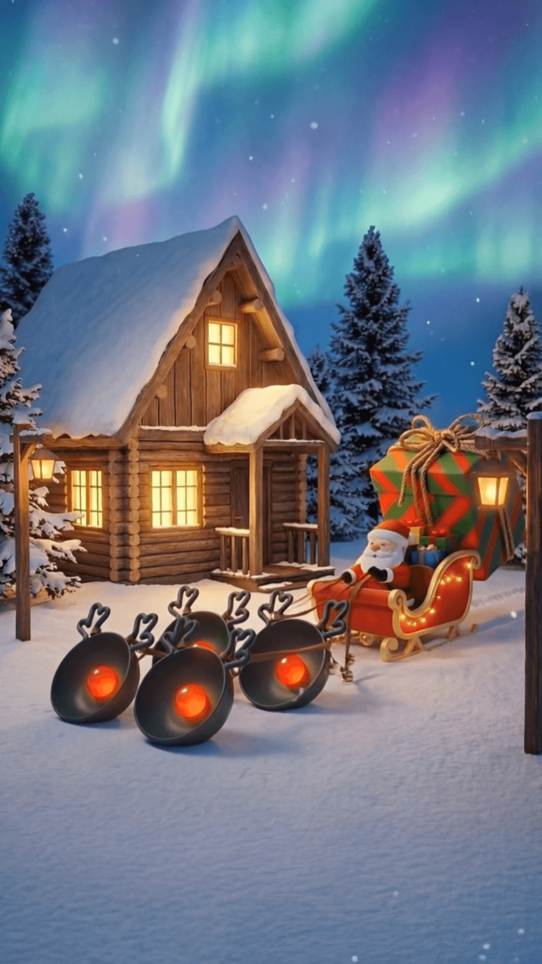 산타의 썰매를 끄는 전통적인 루돌프 대신, 루돌프 식기를 배치해 기발한 비주얼 위트를 선사했습니다.